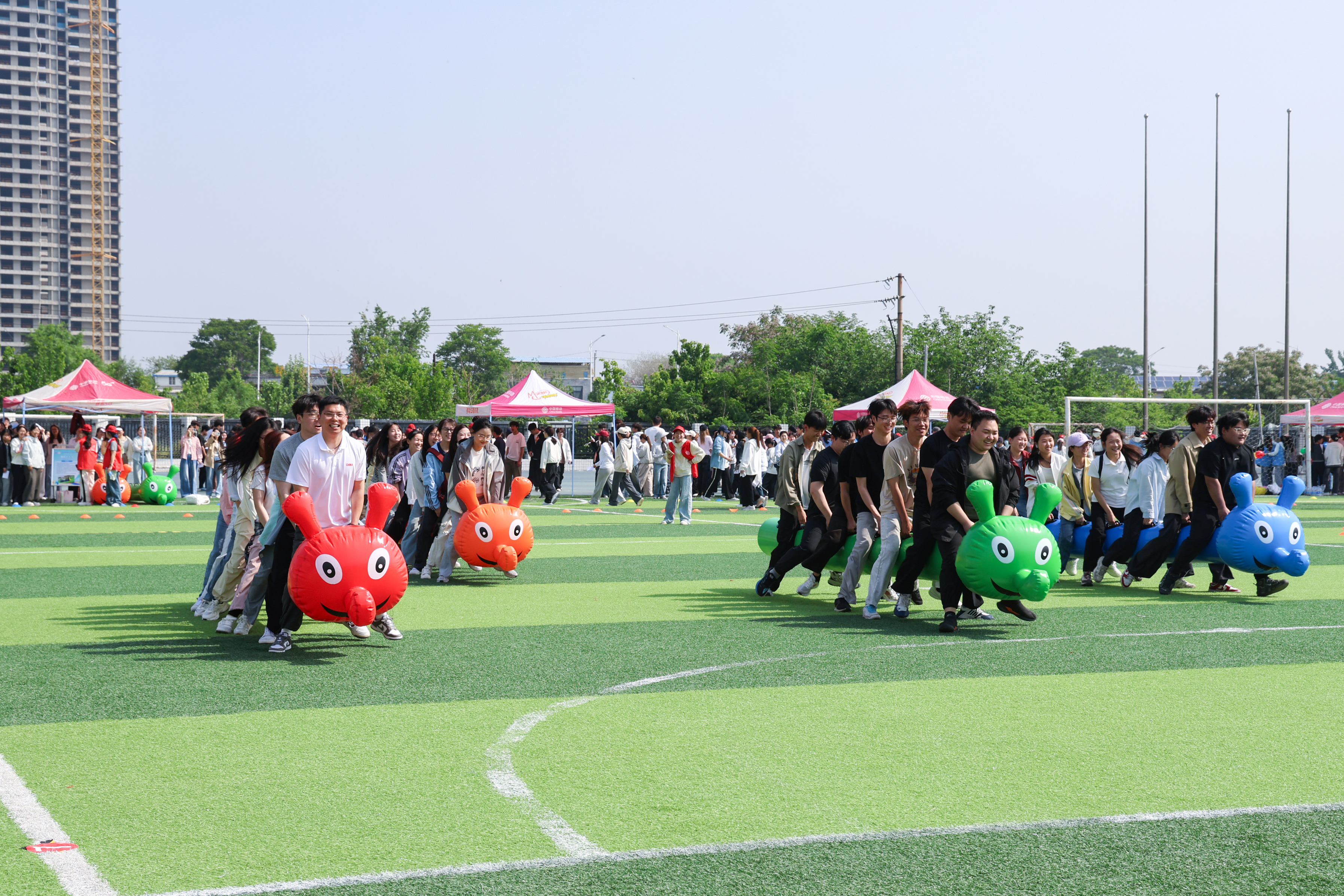 仪式结束后,与会师生齐跳健心健身操,一同参加“同心同行,活力青春”心理运动会。活动包括鸿运彩球、同舟共济、不倒森林等16个团体(个体)项目。学生们以宿舍为单位,结伴攻克层层关卡,于欢声笑语中打破心墙,在携手奋进中实现自我突破。