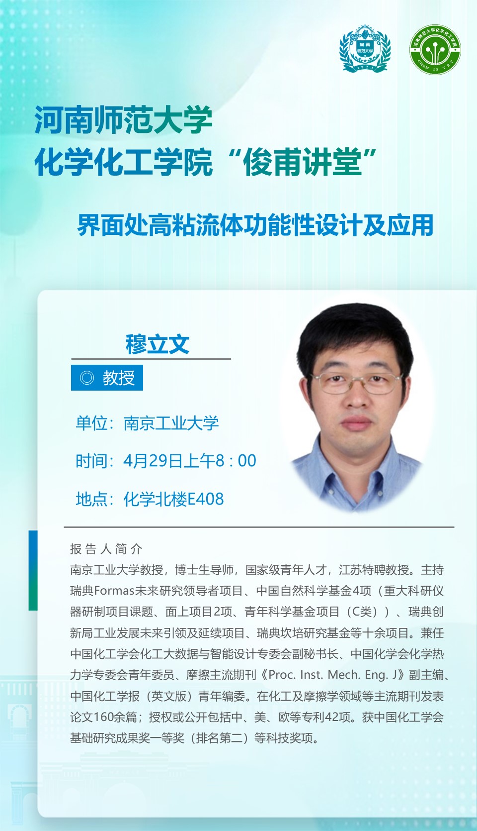 南京工业大学穆立文教授将应邀做客“俊甫讲堂”