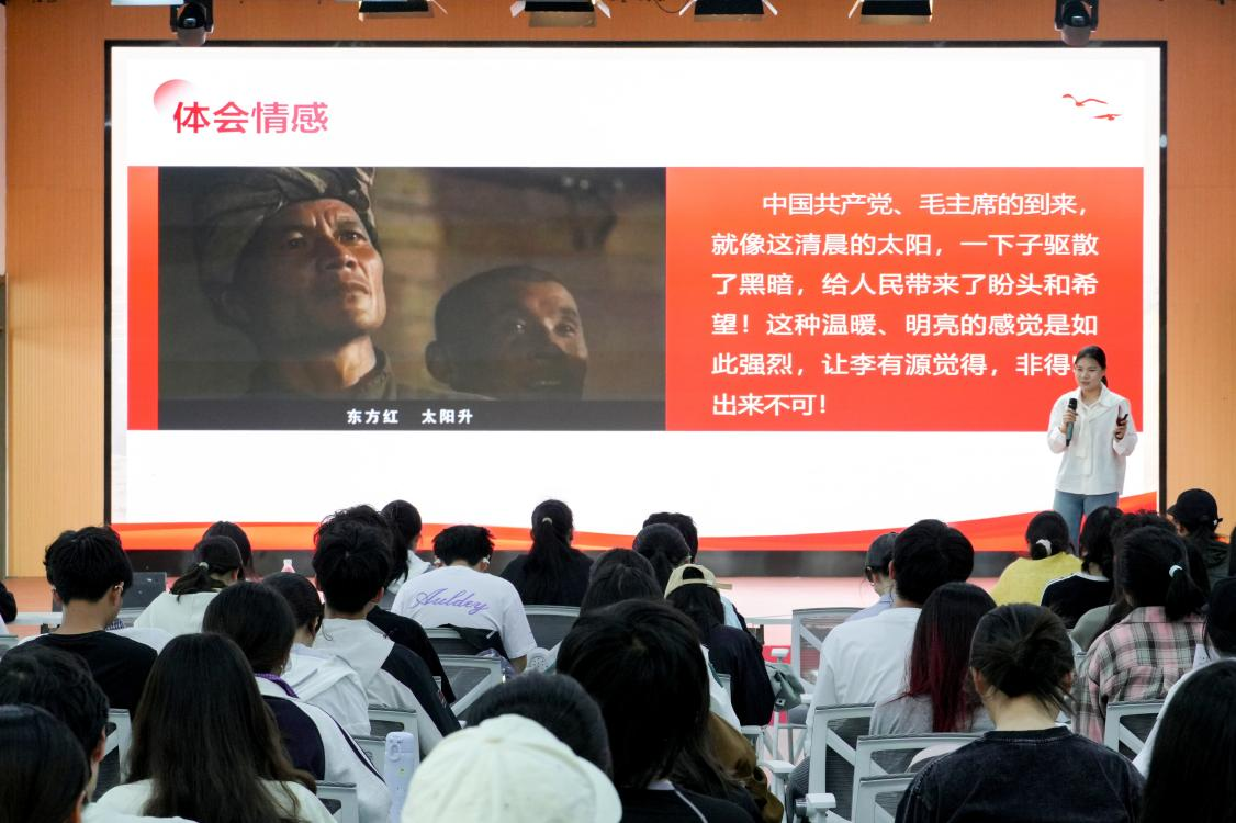 “党史里的青春”主题团课依托政治与公共管理学院政治学教研室党员先锋岗骨干力量,以党史中的青年人物故事为核心,带领学员从百年党史中感悟信仰力量、传承红色基因。“歌声里的时代回响”主题音乐团课以“音乐+思政”为特色,组织马克思主义学院和音乐舞蹈学院学生骨干队伍进行集体备课,打造情景式、沉浸式课堂,引导学生在红色旋律中回望峥嵘岁月、凝聚奋进力量。“听青年讲两会”专题宣讲由校团委青年讲师团主讲,以青年视角解读2026年全国两会精神与“十五五”规划蓝图,引导学生把个人理想融入国家发展大局。在培训日程中,各学院团委严格落实培训要求,广泛组织实践研学、分组研讨、交流分享等活动,从严做好考勤管理与学习考核,确保培训质量。