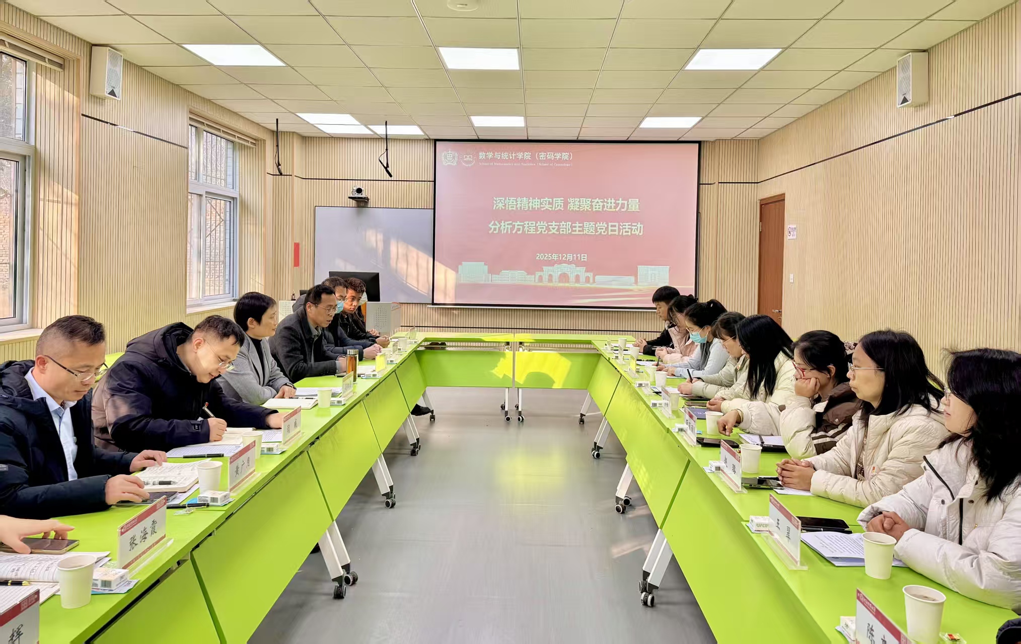 • 12月11日上午,数学与统计学院(密码学院)分析方程教工党支部举办“深悟精神实质 凝聚奋进力量”主题党日活动。校党委书记冯淑霞到会参加并进行指导,支部全体党员参加,数学与统计学院(密码学院)部分班子成员列席。会议由院党委书记宋艳兵主持。会上,分析方程教工党支部书记闫威汇报了支部在学习贯彻党的二十届四中全会与省委十一届十次全会精神、持续推进党建创新以及教学科研等方面取得的进展与成果。支部党员教师围绕如何将全会精神转化为教学创新、科研攻坚、育人育才的实际行动展开深入交流。冯淑霞指出,党的二十届四中全会立足中国式现代化建设全局,明确提出“统筹教育强国、科技强国、人才强国建设”的重大战略部署,为新时代高等教育改革发展指明了前进方向、提供了根本遵循;省委十一届十次全会紧密衔接国家战略,聚焦“一体推进教育科技人才发展”等核心任务,为全省“十五五”时期教育事业高质量发展锚定了实践坐标、细化了落实举措。党的二十届四中全会与省委十一届十次全会对同一战略的接续部署、同向发力,彰显了教育科技人才一体化发展的重要战略意义,更为高校学科建设带来了前所未有的发展机遇,也提出了更高的时代要求。冯淑霞强调,要坚持以高