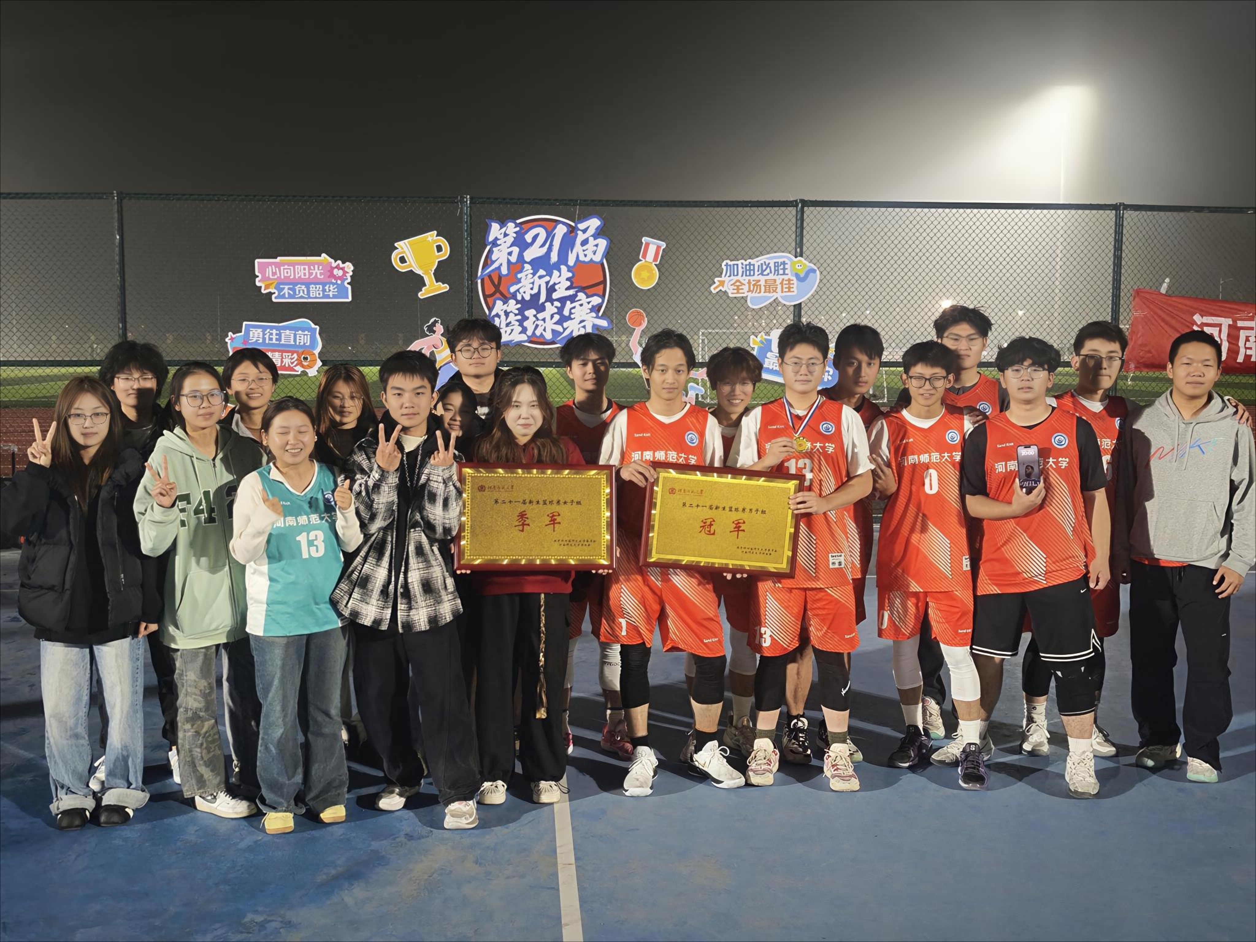 为丰富校园文化生活,彰显同学们昂扬向上的青春风采,近期,河南师范大学科技创新港校区开展第二十一届新生篮球赛。凭借团结协作与顽强防守,我院男篮以4分优势力克对手摘得冠军,我院女篮斩获季军。这场持续两周的篮场较量中尽显我院新生的拼搏底色与团队精神。