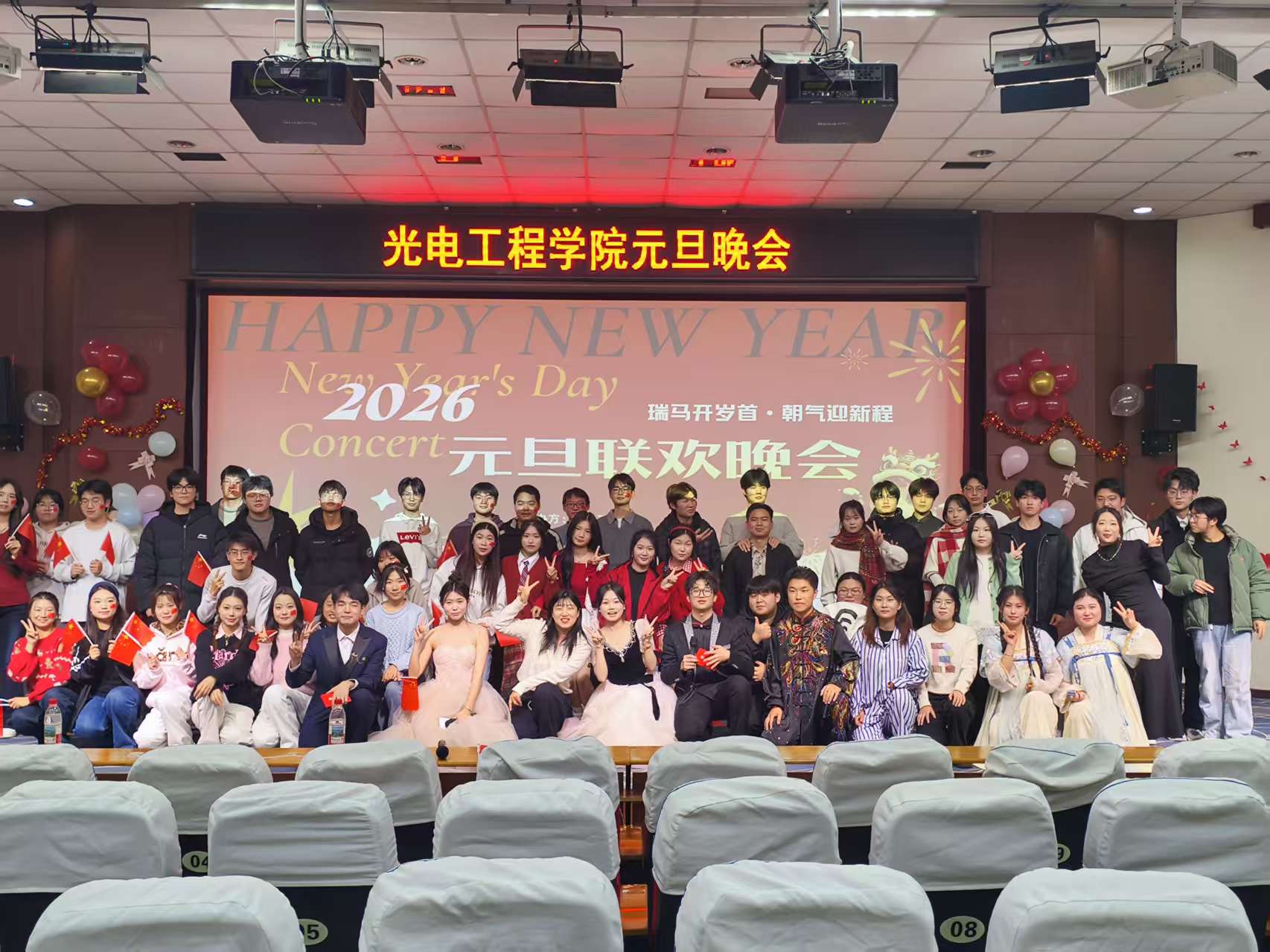 岁序更替,华章日新。12月28日晚,我院2024级“光电逐梦·芯耀未来”元旦联欢晚会在物理北楼三楼报告厅举办。全体师生欢聚一堂,以歌舞寄情、以才艺表意,共同挥别砥砺奋进的2025,热情拥抱充满希望的2026马年新春,用一场视听盛宴书写青春华章、凝聚奋进力量。