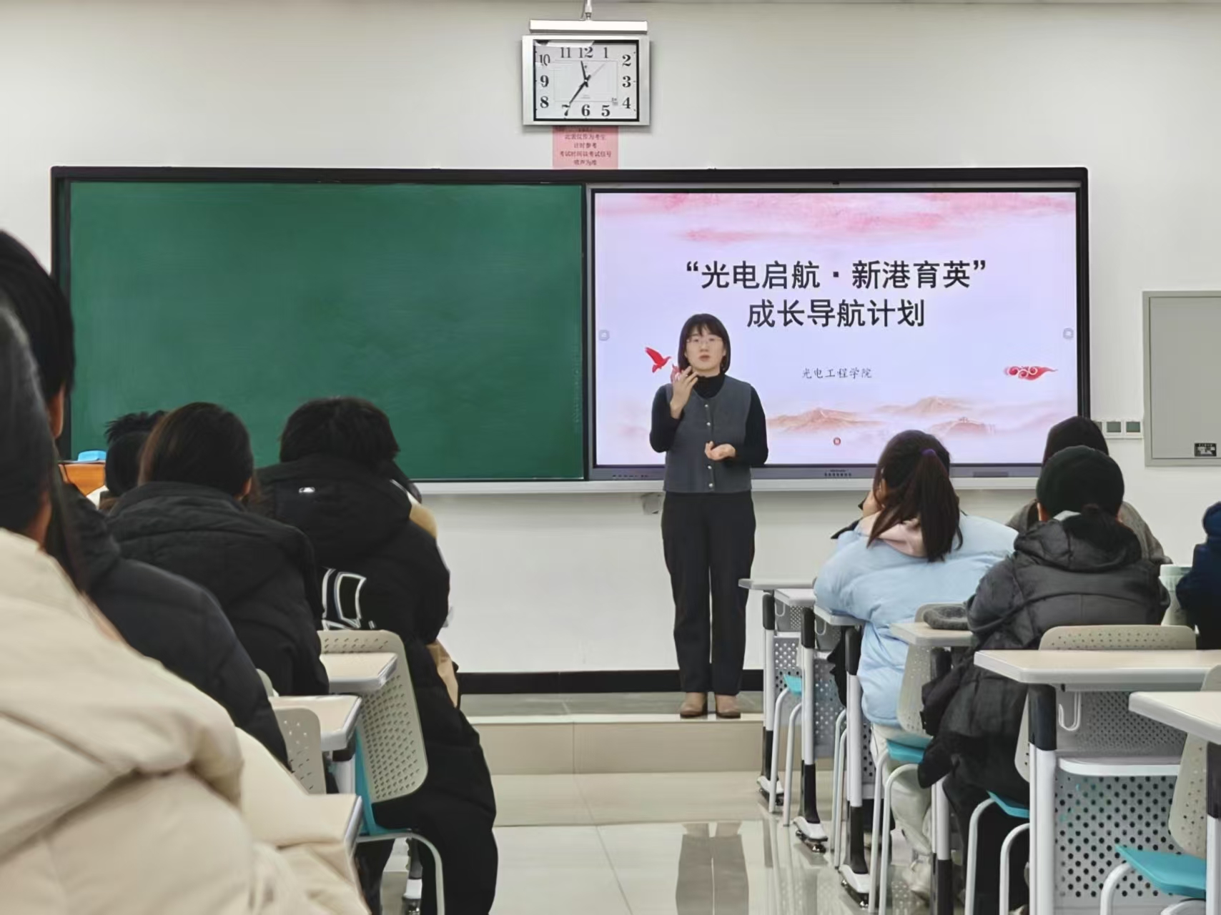 为深入落实立德树人根本任务,创新人才培养机制,1月21日,光电工程学院面向2025级新生启动“光电启航·新港育英”成长导航计划。学院党委副书记宋军丽、教学秘书杨新伟、2025级辅导员王博及学生代表共同参加。活动由学院团委书记、2025级辅导员付康康主持。