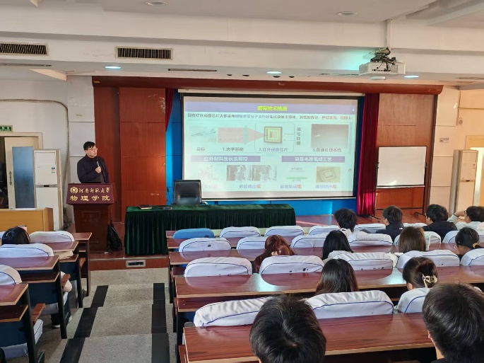 应我院邀请,中央民族大学理学院院长唐鑫教授于11月28日下午在物理南楼学术报告厅作题为《量子点红外成像焦平面阵列技术现状及展望》的专题学术讲座。我院师生代表近150人参加讲座,讲座由院长于坤主持。