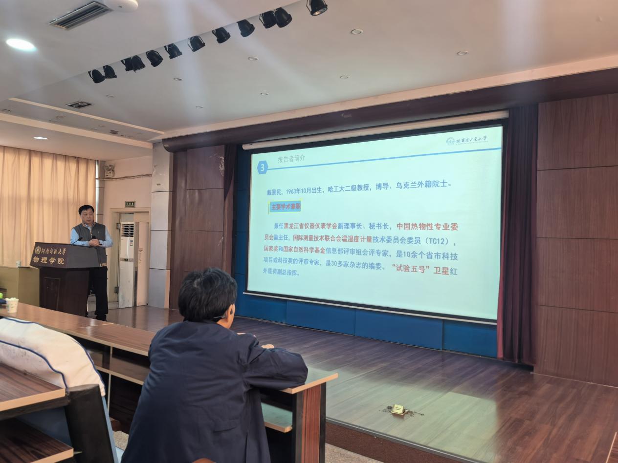 应我院邀请,哈尔滨工业大学戴景民教授于2月1日上午9:00-12:00在物理南楼学术报告厅为我院师生作题为《多光谱辐射测温技术》的学术报告。学院师生80余人到场聆听,报告由于坤院长主持。