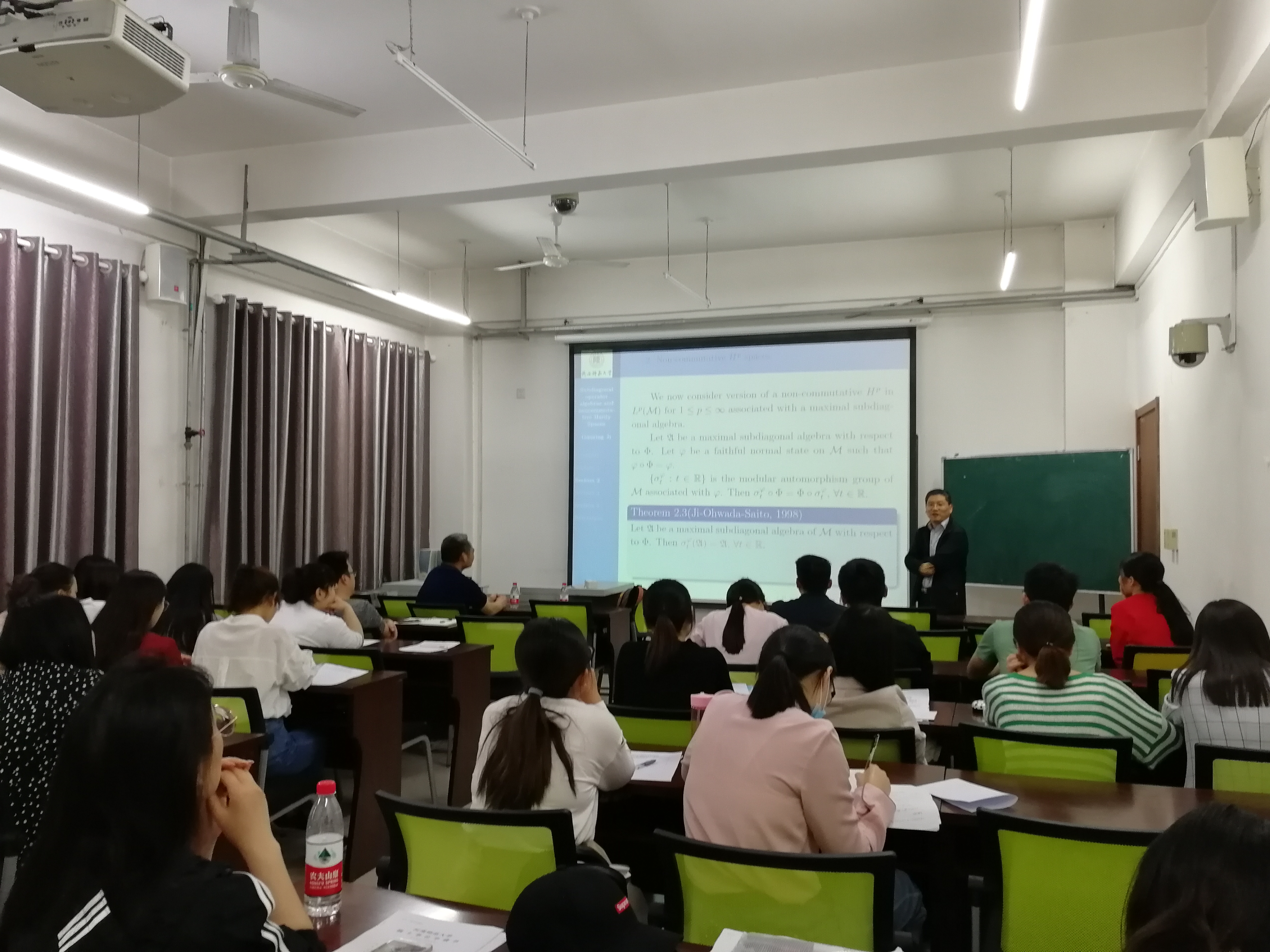 5月10日下午,应数学与信息科学学院的邀请,陕西师范大学博士研究生导师吉国兴教授在数学楼107教室为大家作了题为“Subdiagonal operator algebras and noncommutative Hardy spaces”的学术报告。数学与信息科学学院部分青年教师及研究生参加了此次报告会。