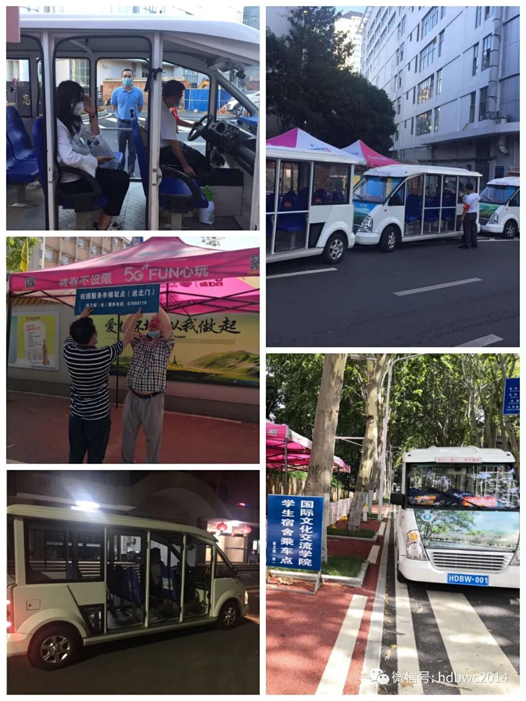 校园服务车在桂子山校区北门、东区学生宿舍、元宝山学生宿舍、西区学生宿舍、国际交流学院以及南湖校区分别设有多个乘车点,方便学生返校。6月17日上午7:00,校园车迎来了第一位返校的学生,截止到当天晚上22:00,共接送了104位毕业生。