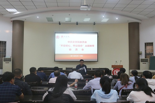 9月24日下午,文学院在崇文楼一楼学术报告厅召开“不忘初心、牢记使命”主题教育动员会。学院领导班子、全体教职工党员参加会议。会议由学院党委书记王俊杰主持。
