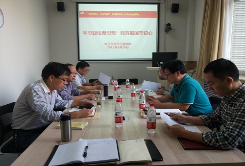 9月26日下午,电子与电气工程学院在学院院士工作站C210召开“学思践悟新思想 教育报国守初心”教育主题第一次集中交流研讨会。学校第一督导组组长、党委组织部部长张向战同志进行现场指导。学院领导班子成员参加此次会议。会议由学院党总支书记董建民主持。
