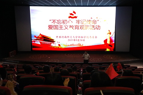 9月30日下午,为庆祝中华人民共和国成立70周年,结合正在学院开展的 “不忘初心、牢记使命”主题教育活动,学院党委组织全体教职工观看爱国主义影片《我和我的祖国》。电影放映前,全体职工齐唱《我和我的祖国》,深情祝福祖国繁荣昌盛。学院党政领导、教工党员等九十余人参加了此次爱国主义观影活动。