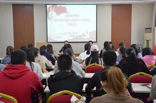 11月4日中午,生命科学学院2019年下半年入党积极分子培训班开班仪式在生物西楼206举行,生命科学学院相关负责人及61名入党积极分子参加本次仪式。
