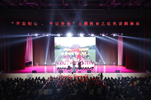 演出现场,一幕幕红色经典片段、一个个鲜活生动的形象,为到场的师生献上了一场内容丰富、内涵深刻的视听盛宴。全剧包含三个篇章。第一篇章的主题是“岁月流逝、精神永恒”,包含《刘胡兰》《金色的鱼钩》《红岩魂》三个剧目,讲述了三位革命先烈的感人事迹,展现出共产党人忠于革命、舍己为人的高尚品格。第二篇章的主题是“穿越历史、对话时空”,包含《红岩永不朽》《你好,我叫建国》两个剧目,通过时空穿越的形式,再现了江姐和解放军战士为革命牺牲的场景,展示了共产党人的使命与担当。第三篇章的主题是“不忘初心、牢记使命”,包含《西南联大的故事》《映山红》《红色娘子军》《红梨木》四个剧目,通过演绎四段红色经典话剧,诠释了共产党人坚定的理想信念和崇高的人生追求。精彩的演出深深触动了到场的每一个人,赢得了现场师生的一致好评。学生纷纷表示,革命先烈的英雄事迹让大家感受到今天的美好生活来之不易,是无数先烈用献血和生命换来的。作为新时代青年,一定要传承红色基因,树立远大理想,争做时代新人,为实现“两个一百年”奋斗目标,实现中华民族伟大复兴的中国梦贡献自己的青春和力量。