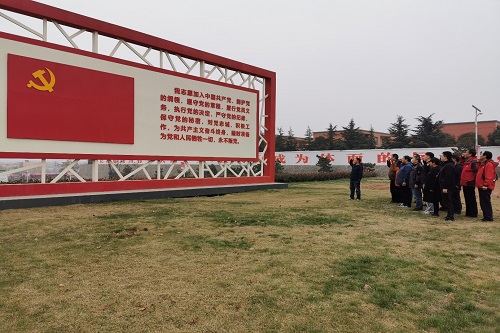 在裴寨社区,全体人员认真观看了《中国最美村官——裴春亮》先进事迹宣传视频,真切感受到了裴春亮“吃百家饭、穿百家衣”的饱受磨难的童年和少年时光,和早早在他的心田里播下的感恩的种子。随后,活动参加人员在裴寨社区讲解人员的引导下,先后参观了极具现代气息的裴寨社区“买全球、卖全球”跨境电商中心、充满历史感的裴寨村老村旧址、利用裴寨老村天然深沟建成的拦洪蓄水水库等。全体人员更加深刻的感受到,10余年来,在乡亲们“实际需求”和裴寨村建设发展这个指南针的指引下,裴春亮努力践行着“听党话、跟党走,乡亲不富誓不休”的铮铮誓言,在裴寨创造了一个又一个奇迹,昔日贫穷落后的小山村已然发展成为了一个欣欣向荣的社会主义新农村。活动最后,保卫处党支部在裴寨社区初心广场举行了重温入党誓词仪式。在党支部副书记陈军涛的领誓下,全体人员右手握拳高举过肩,面向党旗又一次庄严宣誓。