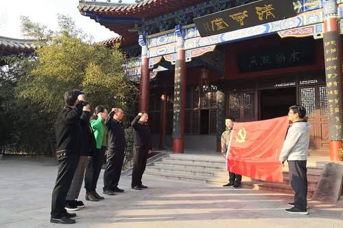 根据讲解员的引导,全体党员干部首先参观了冀鲁豫边区抗战史实展馆的8个专题展室,依次参观了中共中央北方局、中共中央冀鲁豫分局、冀鲁豫军区司令部、第一兵工厂等旧址和邓小平、黄敬、宋任穷等革命领导人旧居。每到一处,同志们都认真观看丰富的史料和实物,仔细听取讲解员生动的讲解。一幅幅图片、一件件实物、一幕幕场景,诠释了共产党人的初心和使命,让大家仿佛回到那些风雨如磐的岁月、回到那个浴血奋战的革命年代,进行了一次深刻的思想洗礼和初心追问。“衙斋卧听萧萧竹,疑是民间疾苦声。些小吾曹州县吏,一枝一叶总关情”。在郑板桥纪念馆,同志们认真观看了各种陈列、展品及图片文字介绍,全面了解了郑板桥的生平事迹、文学艺术成就,对他重视农桑、赈济灾民、案无留牍、室无贿赂、深受百姓爱戴的形象留下了深刻印象,被他为官清正、务实担当、勤政廉政、亲民爱民的精神深深感动。学习期间,在党支部书记许天心的领誓下,全体党员面对鲜艳的中国共产党党旗,重温了入党誓词,再一次坚定了“不忘初心、牢记使命”的信心和决心,进一步强化了心中的理想信念和身上的责任担当。