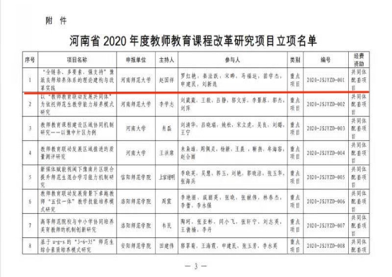 河南省教师教育改革重点项目《“全链条、多要素、强支持”豫派良师培养体系的理论建构与改革实践》