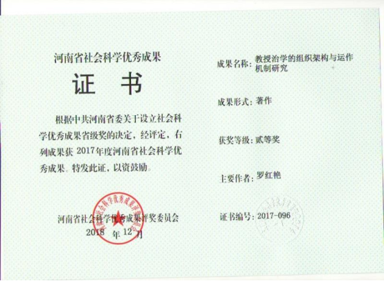 荣获河南省社会科学优秀成果二等奖