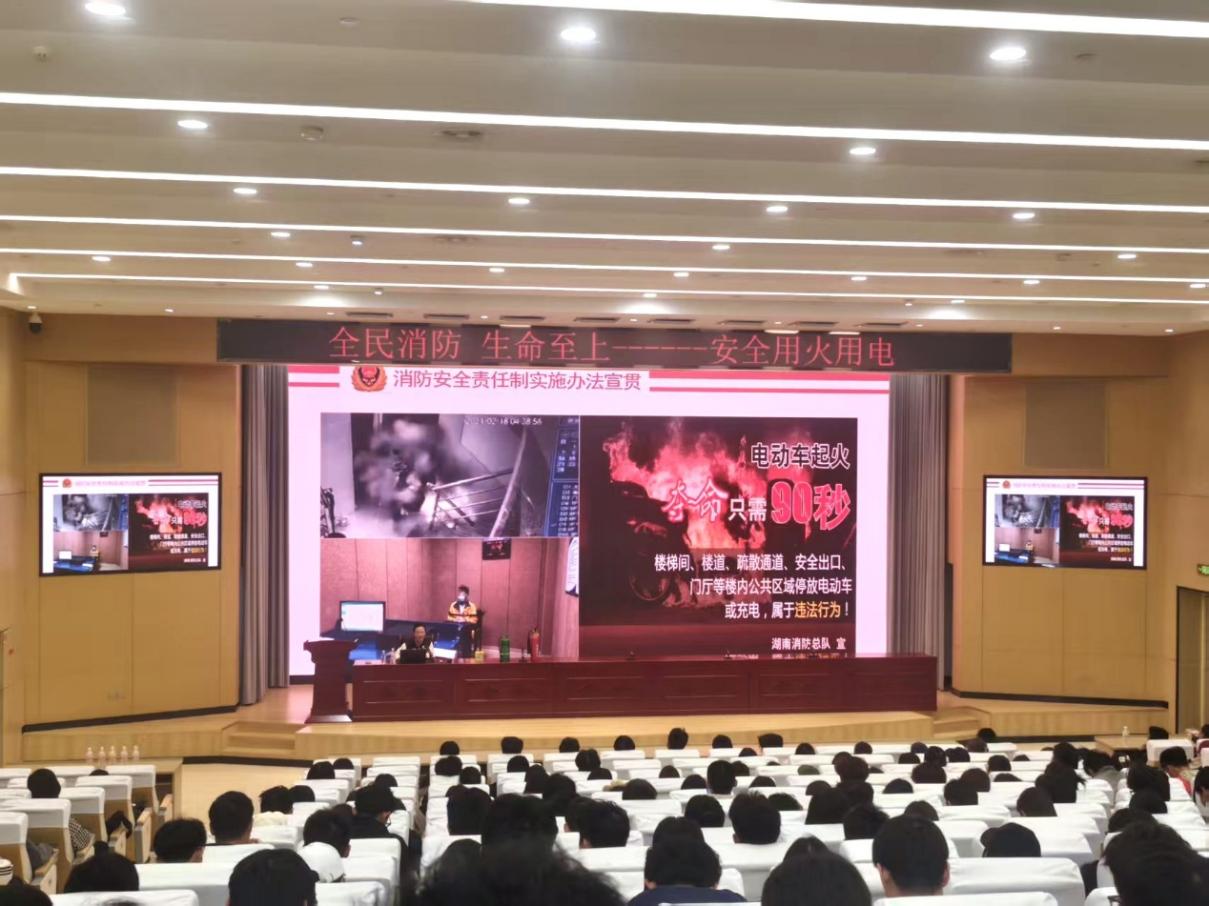 严寒教官结合近期校园与社会火灾实例,剖析了宿舍违规用电、实验室操作不当等常见隐患,明确了宿舍、实验室等重点区域的防火要求,讲解了灭火器、消防栓、防毒面具等设施的正确使用方法,并介绍了火灾报警、初期扑救、紧急疏散及火场自救的应急处置流程。