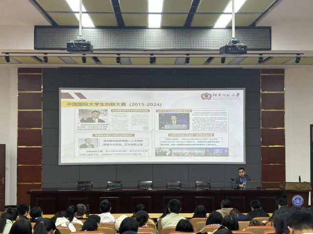 会议伊始,数学与统计学院副院长孙晓、招生就业处招生指导科科长王科分别以《挑战杯竞赛赛事解读》《创新创业教育内涵分析及如何打造一个高质量的创新创业项目》为题,为师生进行政策解读和参赛技术指导。两位老师凭借多年的赛事组织经验和指导经验,详细介绍了赛事的背景、目的、参赛流程和具体注意事项。他们的讲解不仅具有理论深度,还紧密结合实际案例,让学生们能够更直观地理解各个赛事环节,令学生们受益匪浅。随后,学院竞赛指导老师们逐一介绍各自的研究领域和科研成果,分享自己的科研经历,鼓励学生们积极加入各自团队,不断提升学术水平和创新能力。在交流环节,学生们先后就赛事选题、作品创作、团队组建等方面提出问题,老师们逐一耐心解答。最后,学院副院长张恩强调了参加学科竞赛对个人成长成才的重要性,激励学生们要有坐冷板凳的耐心、百折不挠的决心,以梦为马、不负韶华,勇敢地在科技创新的道路上砥砺前行。