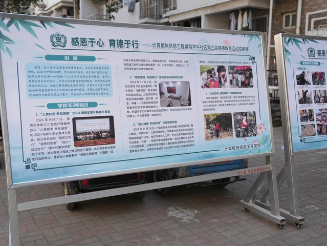 在春风和煦的2月26日上午,东十四楼“一站式”学生社区(计算机与信息工程学院)内洋溢着一股温暖而深刻的氛围——第二届感恩教育成果展成功举办。此次活动以“感恩于心 育德于行”为主题,不仅是一次对学生感恩情怀的深度挖掘与展示,更是学院在思政教育领域的一次积极探索与创新实践。