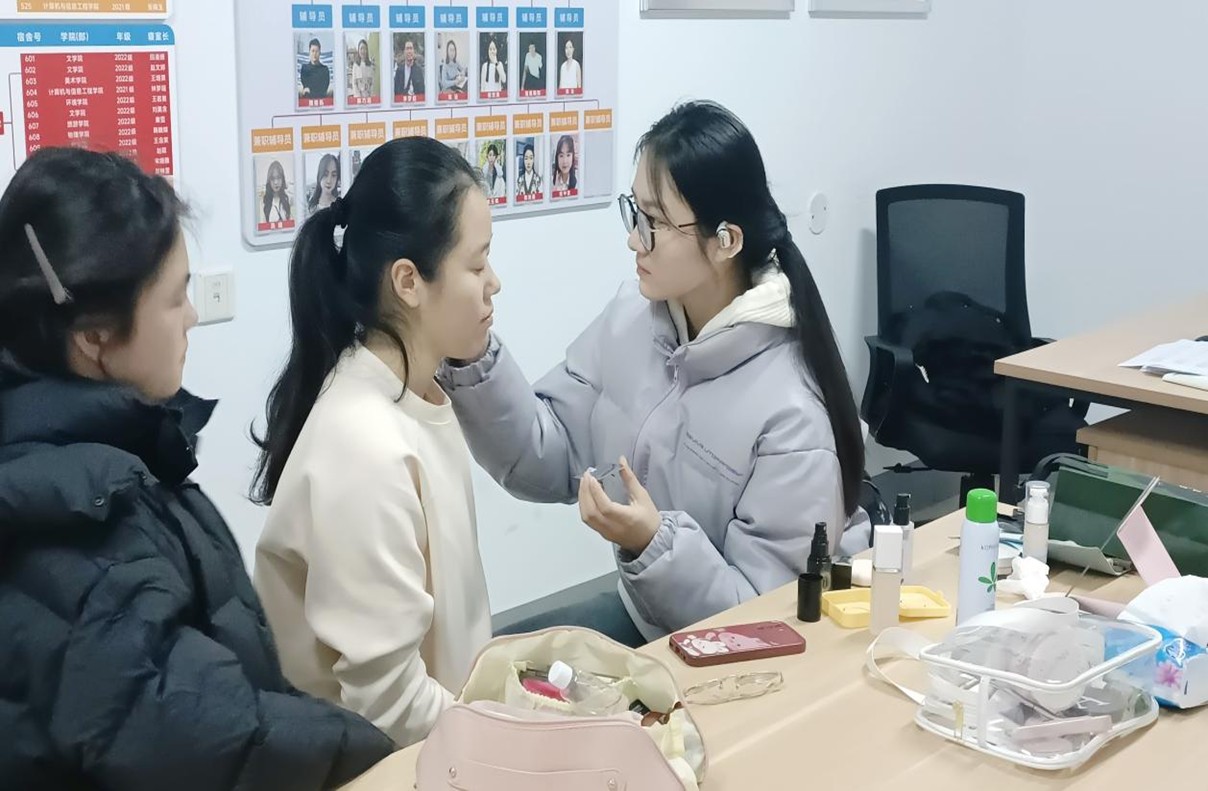 活动现场,专业导师从妆容搭配、形象管理、职业气质塑造等方面展开细致讲解,结合职场不同场合需求,示范了适用于求职面试、正式会议、师范教学等场景的妆容技巧。同学们在导师的指导下积极实践,从基础护肤到精致妆容,一步步学习如何通过妆容展现自信、得体的职业形象。在讨论分享环节中,化妆师与同学们围绕“职业妆容与日常妆容的区别”“如何选择适合自己的化妆品”等话题展开热烈讨论,现场气氛轻松活跃,学生们纷纷表示受益匪浅。