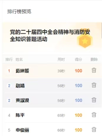 为深入学习宣传贯彻党的二十届四中全会精神及开展119消防宣传月活动的号召,我院分工会11月19日精心策划并成功举办了“党的二十届四中全会知识暨消防安全知识线上竞答”活动。