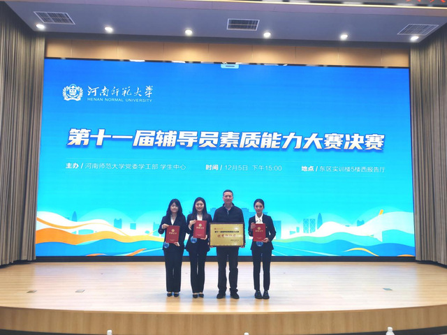 近期,河南师范大学于11月-12月举办第十一届辅导员素质能力大赛。我院积极响应、全力备赛,侯世英老师、侯梦瑶老师和钟桂华老师经过激烈的角逐,最终以优异的成绩分别荣获特等奖、一等奖、二等奖。我院荣获优秀组织奖。