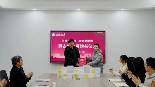 1月13日,我院在学院103会议室举行“书香传薪火 厚德育桃李”——薛占熬教授赠书仪式。捐赠人学院退休教授薛占熬、学院党委书记张东亮、校友与基金工作办公室副主任赵璇、现代工学院副院长杨刚刚、全体专职辅导员及学生代表共同参与。仪式由学院党委副书记李建华主持。