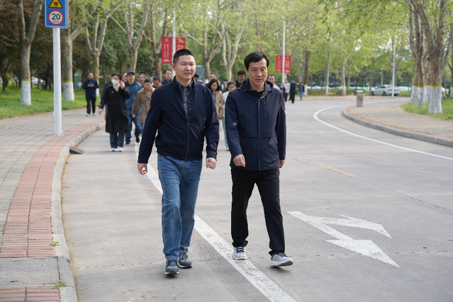 董亚杰在开场致辞中表示:本次活动既是强健体魄的实践,也是凝聚团队力量的契机,希望全体教职工在行走中感受春日生机,以更昂扬的姿态投入工作。14:50,全体人员在学院正门拍摄集体照后,随着发令笛响准时出发。活动路线环东区校园一周,全程设置2个补给打卡点,沿途春意盎然,教职工们或健步疾行展现活力,或结伴交流工作心得,成为校园内一道亮丽的风景线。