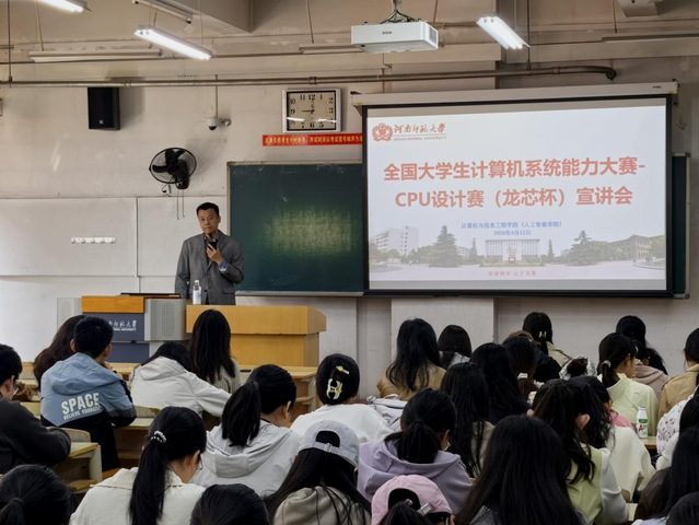 为践行产教融合、协同育人理念,推动国产芯片技术与我院人才培养深度融合。4月12日,我院联合龙芯中科技术股份有限公司举办“龙芯杯”专项宣讲会。特邀龙芯中科技术股份有限公司总经理李德国亲临现场,为全院计算机相关专业学子带来专题分享。