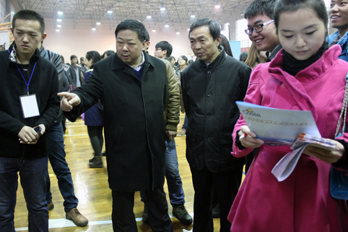 王海旺副书记莅临“双选会”指导工作,并与前来应聘的毕业生和用人单位代表亲切交谈。他指出,举办本次“双选会”就是为毕业生与用人单位之间搭建一座沟通的桥梁,方便用人单位吸纳优秀人才,帮助毕业生找到理想工作。他希望毕业生努力提高个人素质,积极投身国家建设;希望师大学子做好思想准备,增强就业意识,在当前的就业形势下做到有的放矢。