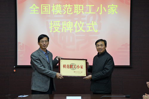日前,在中华全国总工会开展的 “全国模范职工小家”表彰活动中,化学化工学院分工会被中华全国总工会授予“全国模范职工小家”荣誉称号,这是我校首次获得该项荣誉。据悉,河南省高校系统共有两所高校分工会获此殊荣,分别是河南师范大学化学化工学院分工会和郑州大学信息工程学院分工会。11月26日上午,我校在化学化工学院会议室隆重举行授牌仪式,校党委副书记、工会主席王海旺出席仪式并发表讲话。仪式由校工会副主席孙玉珍主持。参加仪式的还有校工会其他相关领导、化学化工学院党政领导及各工会小组长。