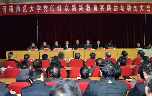 周铁项书记首先宣读了《中共河南师范大学委员会关于成立党的群众路线教育实践活动领导小组的通知》;王键吉校长宣读了《河南师范大学党的群众路线教育实践活动实施方案》。