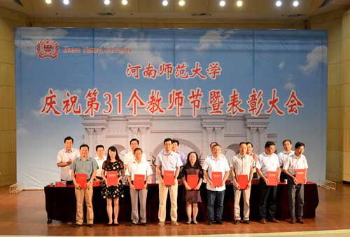本次表彰的单位和个人有:河南省教育系统先进集体化学化工学院、河南省科技创新团队、河南省高校科技创新团队;省教育系统先进工作者、省教学名师、省师德先进个人、省优秀团干部;省优秀青年社科专家8人;全国大学生创新创业年会指导教师、教育部东芝杯中国师范大学理科师范生教学技能创新大赛获奖学生指导教师、河南省高等学校师范教育专业毕业生教学技能大赛优秀辅导教师10人;第五届河南省发展研究奖、河南省社科优秀成果奖、河南省科技进步奖的获得者9人;2015年度河南省教学技能竞赛一等奖获得者14人;河南省科技创新杰出人才、河南省科技创新杰出青年、河南省高校科技创新人才13人。