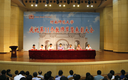 9月9日下午,我校庆祝第31个教师节暨表彰大会在音乐厅举行。校领导郑邦山、王新生、孙先科、李雪山、马治军、岳杰勇、校长助理朱华北出席会议并在主席台就座。受表彰的教师和部分师生代表参加了会议。大会由校党委副书记王新生主持。