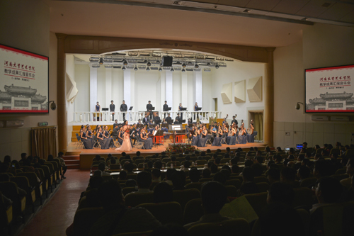 下午,我校考察团在明伦校区参观了河南大学校史馆、文物馆、科举文化馆及近代建筑群。之后,在河南大学艺术学院音乐厅,我校考察团一行与河南大学领导及部分师生一同观看了“一脉同根、情深意长”教学成果汇报音乐会。这场专门为我校考察团安排的音乐盛宴,曲目经典、格调高雅、旋律欢快,《庆典序曲》表达了对我校跨入省部共建行列的由衷祝贺,《我爱这土地》、《家乡在呼唤》表达了两校血脉相连的兄弟情谊,《白毛女》选场、《河南大学校歌》、《战台风》更是传达了坚韧不拔、奋斗不息的精神,让我校考察团一行感受到了浓浓的“回家之情、兄弟之谊、奋斗之力”。