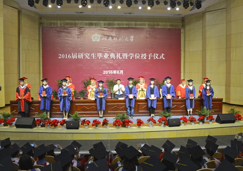仪式在庄严的国歌声中拉开序幕。副校长孙先科宣读了《河南师范大学关于授予张永慧等博士学位的决定》、《河南师范大学关于授予曹逸民等硕士学位的决定》,副校长李雪山宣读了我校关于2016年优秀毕业研究生、优秀科研成果奖表彰的决定。