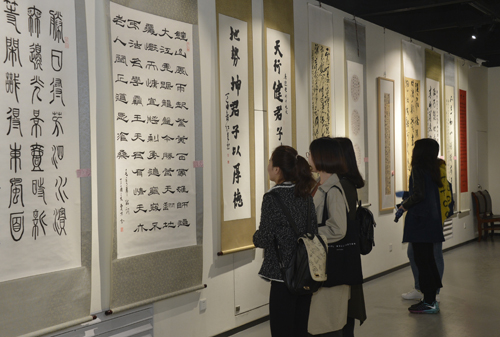 本次书画作品展共有风格多样的116幅参展作品,计划展出15天。我校离退休职工管理处、校语委、附属幼儿园、教工书画协会等多个单位职工的作品进行了展出,作品书体涵盖篆、隶、行、楷、草等诸体,书画作品或寄情于山水,或写意于沛泽,呈现出喜迎十九大召开的昂扬向上的文化氛围。