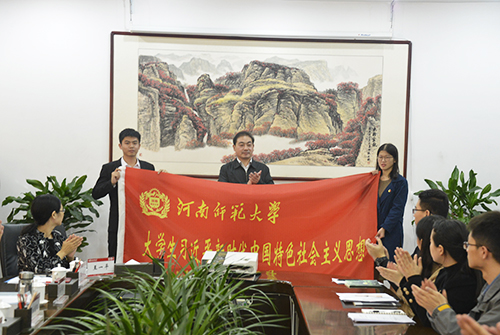 成立仪式上,岳杰勇为“大学生习近平新时代中国特色社会主义思想研习会”授旗;校团委书记孙冬青介绍了“大学生习近平新时代中国特色社会主义思想研习会”的成立背景和目标定位;指导教师代表马福运和马克思主义学院2016级硕士研究生潘博博等6位学生代表进行了交流发言。