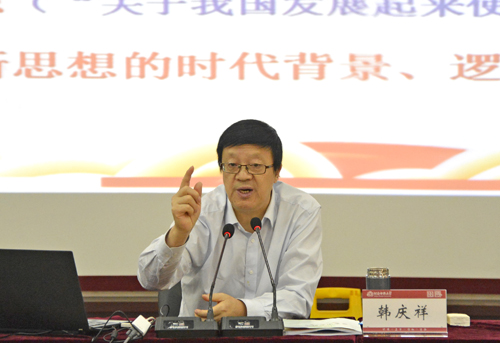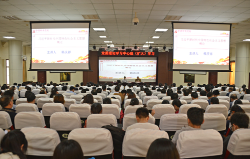 为深入学习贯彻习近平新时代中国特色社会主义思想和党的十九大精神,4月17日下午,中央党校校委委员韩庆祥教授来我校为校党委理论学习中心组(扩大)作专题辅导报告。报告会由校党委书记赵国祥主持。校党委理论学习中心组成员、副处级以上干部、师生代表近400人听取了报告。