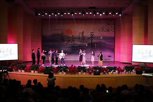 笔力遒劲,谱写今朝画卷;言语激越,歌颂盛世清平。4月20日晚,河南师范大学广播站第十八届“言颂清平”诗歌朗诵会在帕瓦罗蒂音乐厅举行。党委宣传部、校团委等单位负责人与600余名师生共享诗歌盛宴。