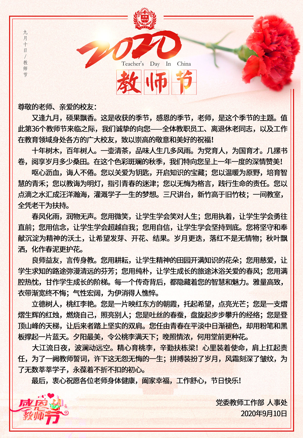 第36个教师节:致敬全校教职员工和教育领域的校友