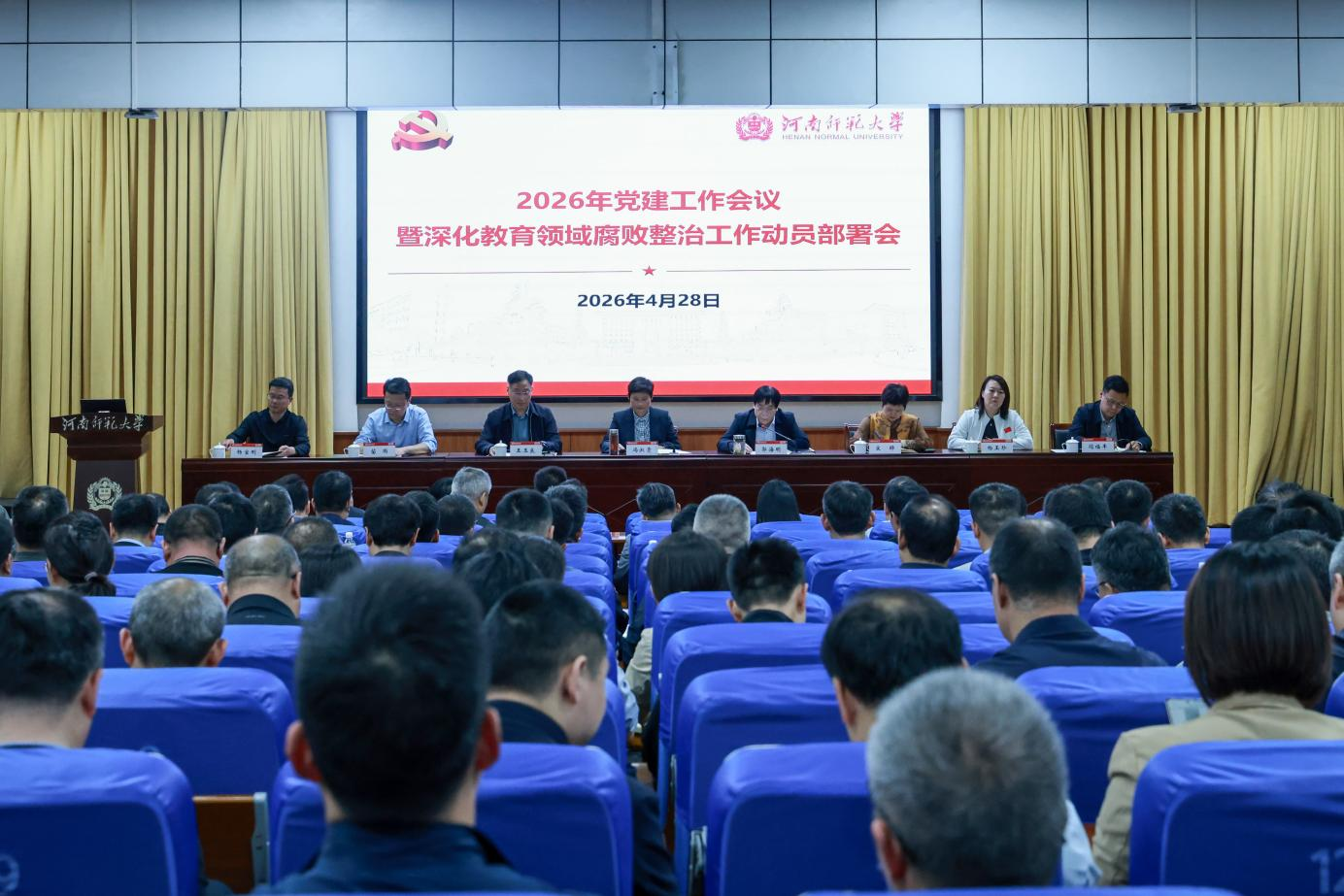 4月28日下午,我校2026年党建工作会暨深化教育领域腐败整治工作动员部署会在党校教室召开。校党委书记冯淑霞出席会议并讲话,校党委副书记、校长郭海明主持会议。校领导王玉良、宋晔、苗雨、杨玉珍、杨宝刚、闫福丰出席会议,全体处级干部参加会议。