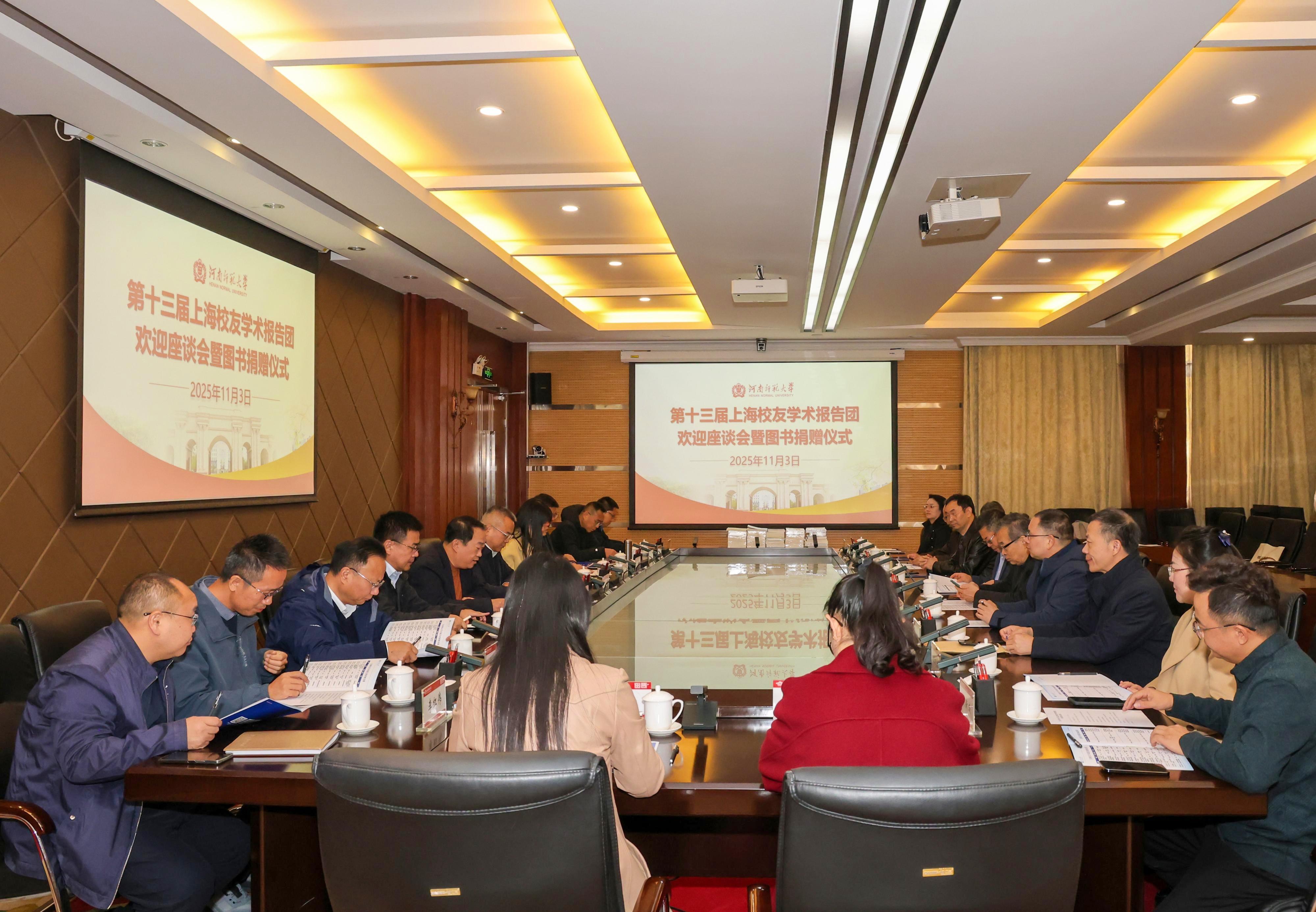 11月3日,第十三届上海校友学术报告团欢迎座谈会暨图书捐赠仪式在勤政楼第三会议室举行。校党委常委、副校长聂国兴出席会议并致辞,相关职能部门、部分学院负责人参加座谈会。座谈会由校友与基金工作办公室主任崔宗超主持。