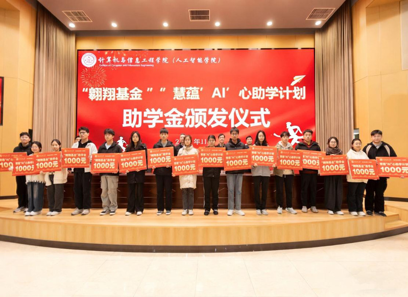11月20日,计算机与信息工程学院(人工智能学院)首届“翱翔基金”与“慧蕴‘AI’心助学计划”助学金颁发仪式在东校区实训楼五楼西报告厅举行。学校校友与基金工作办公室、学院相关负责人,助学项目捐赠人、全体专兼职辅导员、受资助学生以及2025级学生代表300余人参加,仪式由学院党委副书记陈清利主持。