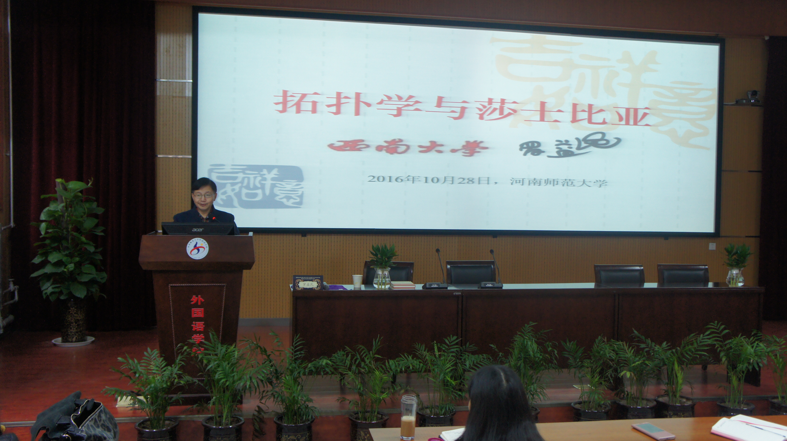 10月28日,应外国语学院邀请,西南大学罗益民教授在学院学术报告厅作了题为“拓扑学与莎士比亚”的讲座。外国语学院相关专业教师、研究生、本科生共百余人聆听了讲座。讲座由外国语学院梁晓冬教授主持。
