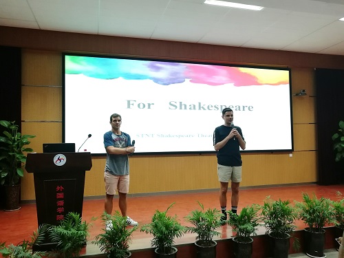 516日晚,我院英语戏剧培训讲座于报告厅成功召开。很荣幸邀请舞剧编导、国际歌舞剧演Christian Bullen、国际资深舞者及编导Adam Scown进行现场教学。院长梁晓冬主持,鲁跃峰老师、李琳瑛老师、唐新老师出席活动,莎剧全体演员及百余名学生积极参与。