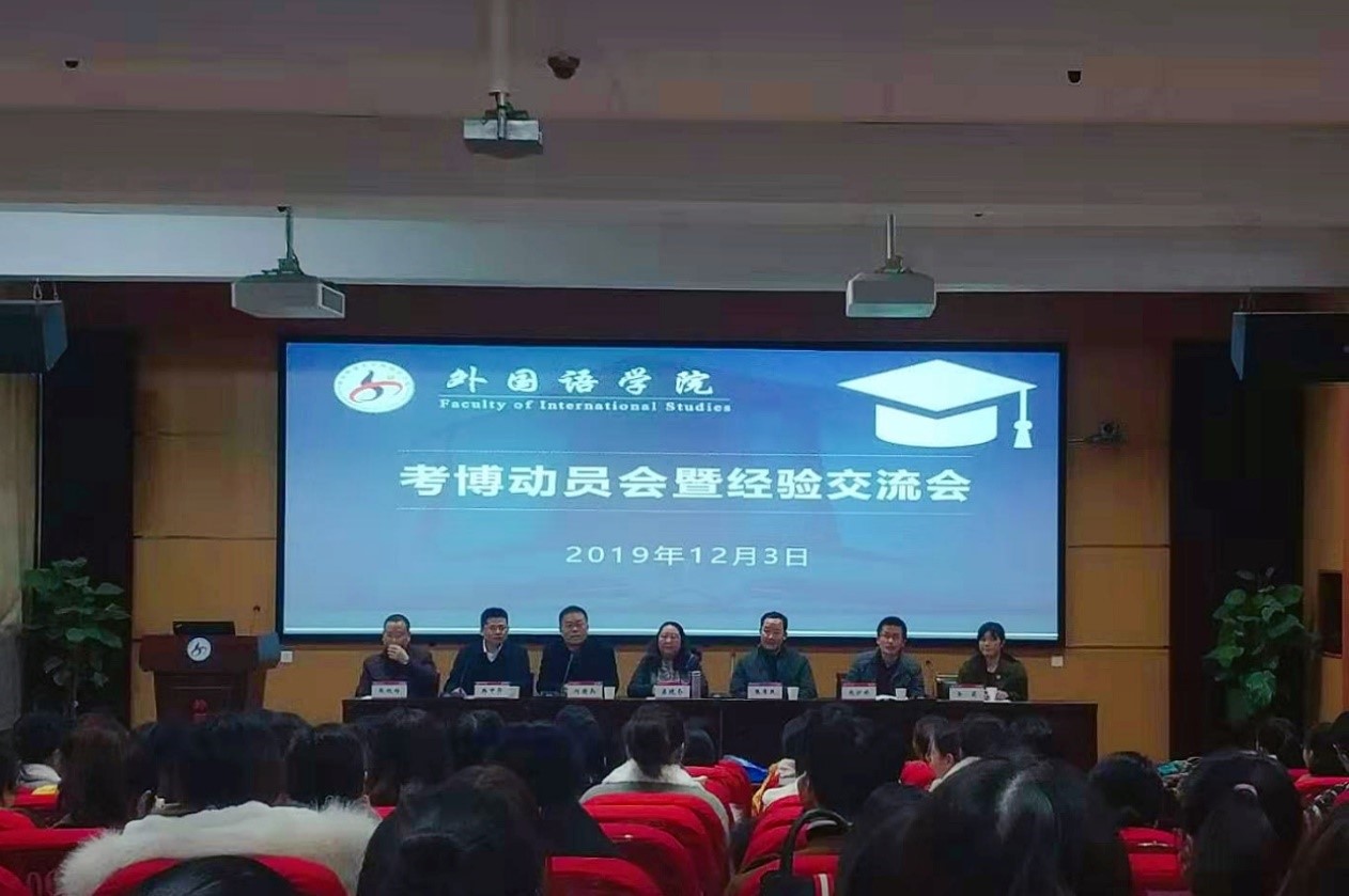 为营造良好的考博氛围,给广大硕士生提供全方位的考博指导,123日晚,外国语学院在院学术报告厅召开2019年考博动员会暨经验交流会。院长梁晓冬博士、副院长刘国兵博士、张锐锋博士、张军民博士、赵护林博士、韩中华博士、金莉博士出席本次动员会。会议由副院长刘国兵主持,百余名硕士研究生参加了此次会议。