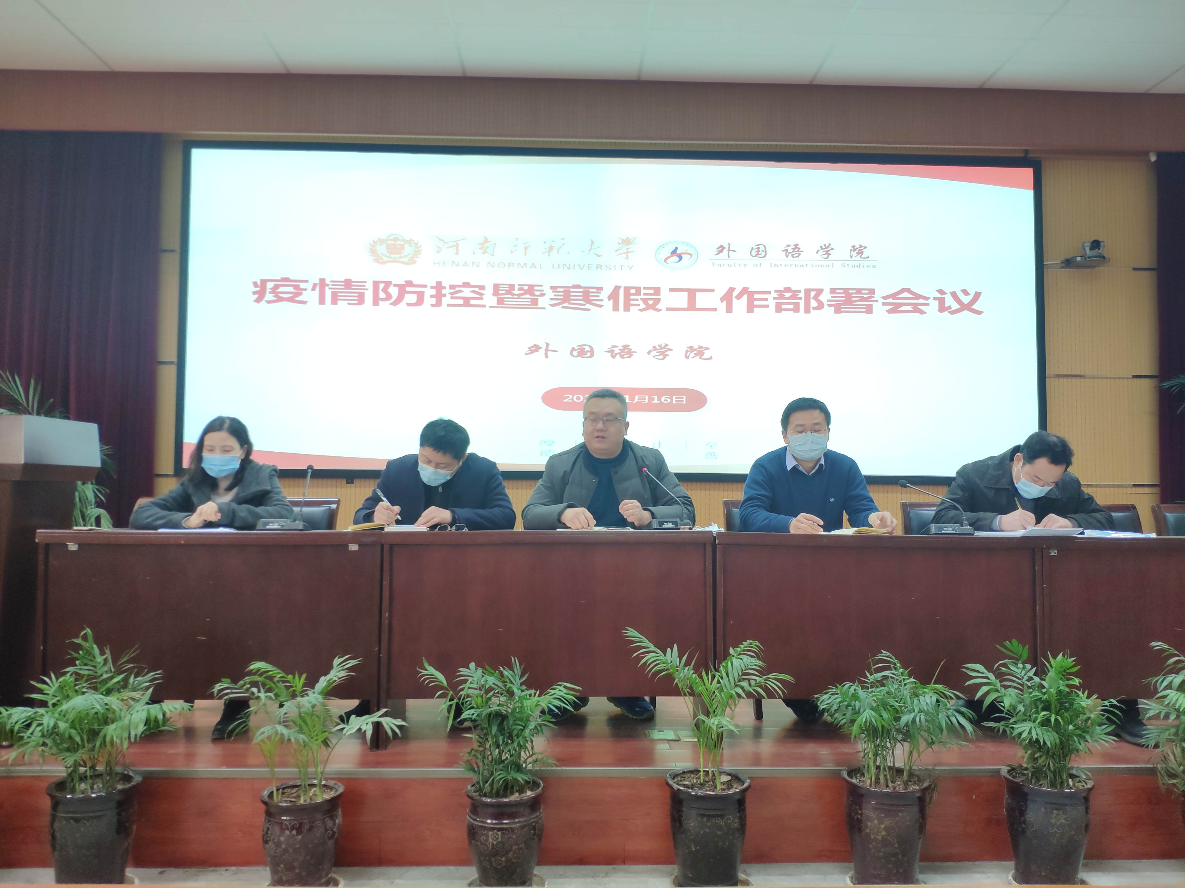1月16日下午,外国语学院召开疫情防控暨2021年寒假工作部署会议在学院报告厅召开,学院全体教职工参会。会议由学院党委书记包晓光主持。