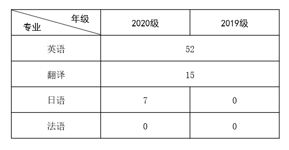 注:英语、翻译专业接受2019级与2020级学生转入申请,转入名额视考核情况打通使用。所有转入学生随2020级相应专业学习。
