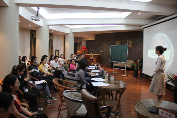 活动伊始,由主持人介绍本次比赛的各位评委及详细的比赛流程,本次比赛共分为三个环节:说课,答辩及才艺展示。在观众们热烈的掌声中,13位参赛选手以A Visit to the Moon为题并结合PPT依次进行英语教学说课展示。选手们充分的说课材料,流畅的讲解,端庄大方、挥洒自如的仪态极大的展现了自身过强的教学技能和风采。其中,选手张楚城以标准的发音和独具特色的PPT设计吸引了众多赞赏。另外,选手邹雪凤将歌唱才艺融入到教学环节中,于有趣的互动中对知识点更好地进行讲解,更是别具一格。在选手们进行教学展示之后,几位评委老师围绕参赛选手的说课内容,就教学设计、教学方法、教学内容以及教育理念等方面进行提问与点评,选手们也根据自身实际进行答辩。最后,由王彩琴老师进行总结,她从衔接过渡、文化目标、教学方法与教学环节的一致性等方面对参赛选手们的表现进行深层次的点评,选手们都表示受益匪浅。比赛最终决出特等奖三名、一等奖四名和二等奖六名。至此,本次师范生教学技能大赛院级初赛圆满结束。